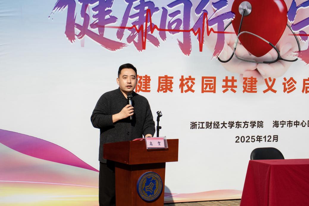 学院副院长高贺在致辞中表示,学院始终将师生健康置于育人工作的重要位置,此次合作是拓展“服务育人”路径的重要举措,也是构建健康平安校园的有力支撑。学院将积极做好统筹协调与后勤保障,推动健康服务与教育教学深度融合。