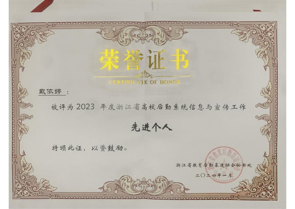 上一篇:【个人奖项】2023年度浙江省高校后勤餐饮工作成绩突出个人——周新丰